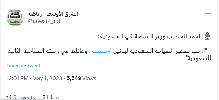 در همین رابطه احمد الخطیب وزیر گردشگری عربستان با تایید این خبر، گفت: به مسی سفیر گردشگری عربستان و خانواده اش که برای دومین بار به کشور ما سفر کردند، خوش آمد می گوییم.